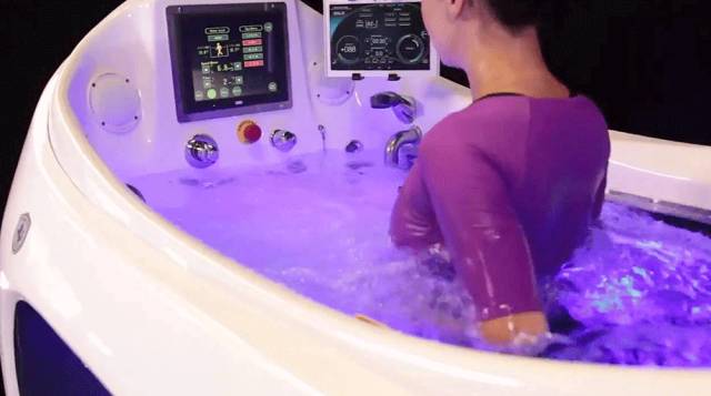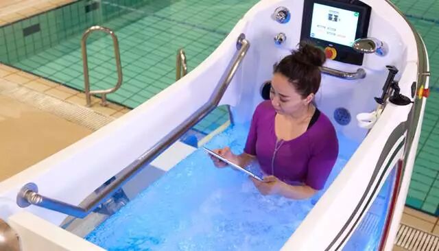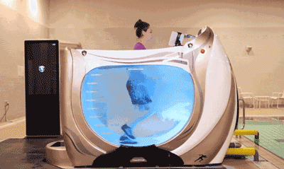 而这样的运动方式,更是一种康复训练,因为水有浮力,当水位达到胸口高的时候,你的体重就会减轻80%,这样一来,与在普通跑步机上跑步相比,对关节的压迫与震动都会有较大的减少,非常适合运动员受伤后的恢复训练。。。