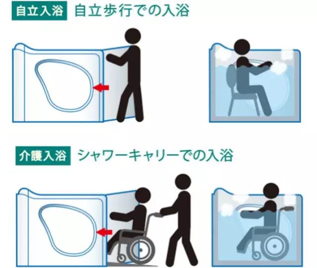 而最为人性化的一个设计还有,Water Walker&SPA针对长期坐轮椅的人群,特意在浴缸后面部分安装了,可在打开后将轮椅直接推进去的设计,让这类人群同样可以享受,坐着运动与泡澡的便利性。。。